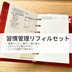 習慣管理を、もっとシンプルに、やさしく整える。 mini6システム手帳用のハビットトラッカー(カラー&モノクロ)と、 習慣づくりを考えるためのビルダー(おまけ)をセットにしました。 ✔ 習慣を見える化したい ✔ 続けやすい形で管理したい ✔ 手帳に合わせて自由に使いたい そんな方に向けた、シンプルで続けやすい習慣管理リフィルです。 「習慣を続けたいのに、うまくいかない」 そんなときに、無理なく整えられる構成にしています。 ・何を続けたいのかがぼんやりしている → Habit Builderで、習慣の方向を整理 ・やるだけで終わってしまう → Habit Trackerで、日々の積み重ねを見える化 ・手帳にうまくなじまない → シンプル設計で、既存のページとも組み合わせやすい 習慣を「気合い」ではなく、 ゆるく整えて続けていくためのリフィルです。 【 商品の特徴・こだわりポイント 】 ✔ カラー&モノクロの2種類収録 → 気分や手帳に合わせて使い分け可能 ✔ 最大7項目の習慣を同時管理 → 健康・勉強・生活などまとめてチェック ✔ 書きやすさを重視したレイアウト → mini6でも書き込みやすい行間・余白設計 ✔ アンティーク風のシンプルデザイン → 主張しすぎず、手帳になじみやすい ✔ 3種の補助線付き → カット・貼り付け・折りたたみがしやすい ✔ 習慣設計用「Habit Builder(簡易版)」付き → 習慣の目的・きっかけ・最初の一歩を整理 ✔ シリーズ連携設計 → 設計 → 実行 → 振り返りの流れで使える 【 セット内容・収録物 】 ■ Habit Tracker(Mini6・Color+Mono) ・PDFデータ(A4/Mini6 2面付) 全3枚 ■ 収録内容 ・Habit Tracker(カラー):1枚 ・Habit Tracker(モノクロ):1枚 ・Habit Builder 簡易版(おまけ):1枚 ▶ 合計 3枚 ※画像に掲載されているものはすべて含まれます。 【 サイズ・仕様 】 ・対応サイズ:Mini6 ・用紙サイズ:A4(2面付レイアウト) ・ファイル形式:PDF ・解像度:300dpi相当 ・印刷想定:家庭用プリンタ/コンビニ印刷 ・片面印刷(印刷環境により両面も可) ・余白・穴位置を考慮した設計 ※パンチ・裁断環境により微調整をおすすめします 【 使い方・おすすめの使い方 】 はじめての方でも使いやすいよう、シンプルに設計しています。 ■ 基本の使い方 ・印刷して、カット&穴あけして手帳にセット ・チェック形式で日々の習慣を記録 ■ おすすめの使い方 ・Habit Builder(設計) → 習慣の内容・きっかけ・小さな一歩を整理 ・Habit Tracker(実行) → 毎日のチェックで積み重ねを見える化 ・組み合わせ例 → 「設計 → 実行 → 振り返り」の流れで使う → 既存のデイリー・週間ページと併用 習慣の振り返りは 「3 Line Diary」と組み合わせることで より効果的に使えます ■ アレンジ例 ・1週間単位/1ヶ月単位で使い分け ・1ブロックずつカットして追加 ・貼り付けてページ拡張として使用 ・折りたたんで間に挟む使い方もOK 【 納品形式・納品方法 】 ・デジタル商品 PDFデータ (複数PDFをZIPにおまとめします。解凍してご利用ください。) ・購入後、Boothのダウンロード機能より即時取得可能 【 利用範囲・禁止事項(利用規約)】 ・個人利用のみ可 ・再配布・再販売・転載は禁止加工配布は禁止 ・商用利用不可 【 注意事項・免責 】 ・デジタル商品のため、購入後の返金はできません。 ・印刷環境・プリンタ設定により色味や仕上がりに差が出る場合があります。 ・印刷・裁断結果の保証はできません。 ・本データの著作権は放棄していません。 ・本データを利用して発生したいかなるトラブル、損害、違法行為について、一切の責任を負いません。 ・本データは予告なしに内容の変更、修正、販売停止を行う場合があります。 ・本商品はデジタルリフィルです。効果を保証するものではありません。 【 よくある質問 】 Q. 再ダウンロードできますか? A. Boothの購入履歴ページから、再ダウンロード可能です。 【 サポート・問い合わせ先 】 ご不明点は、BOOTHのメッセージ機能よりお気軽にお問い合わせください。 ✦ 詳しい書き方や活用例は、ブログ記事でも紹介しています。